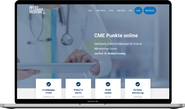 Micro Learning Medicine ist eine Online-Plattform zur digitalen Weiterbildung für Ärzte und ermöglicht die komfortable Teilnahme an Fortbildungen orts- und zeitunabhängig im Internet. Die Inhalte der Videos gehen behandeln interessante Fälle, die Prof. Dr. med. Michael Forsting in seiner täglichen Praxis in einer der größten Abteilungen für Radiologie in Europa behandelt.